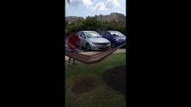 This playful video features William standing under a hammock. He clings on to it and starts swinging his legs to rack up some momentum, after which he does a snap midair roll to get in a perfect position to chill in the same hammock.