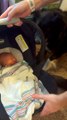 The owners of Hank, the dog, decided to make him meet their baby for the first time. The man held him by the leash while the woman brought her baby in the carrier. The dog got excited when he saw him and began sniffing him. He gave the baby and his mother kisses while welcoming a new member to the family.