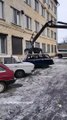 Cette voiture mal garée va se faire emporter en quelques secondes. Fourrière efficace
