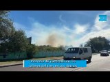 Incendio de pastizales en los talleres del tren en Los Hornos
