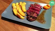 Magret de canard au miel et pêches caramélisées
