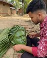 Coconut leaves sculpture art Saha Rukh Khan face craft