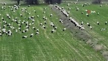 GÖÇ yolundaki leylekler, Kütahya'nın Domaniç ilçesinde mola verirken, yüzlerce leyleği tarlalarda görenler bu anları cep telefonuyla görüntüledi.