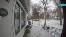 This woman lost footing over some icy stairs while stepping outside her house. She stepped out without paying much attention to the ice-covered stairs below. That's when she slipped and crashed hard on her butt.