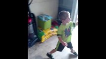 Kid gets scared by motorcycle, funny!