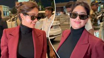 Janhvi Kapoor's Majestic Maroon-Black Bossy Avatar For Her Airport Voyage | Mumbai