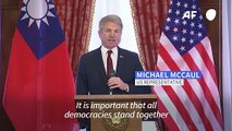 United States Representative Michael McCaul says during a trip to Taipei that the US will follow through on its promise "deliver weapons" as he calls for democracies of the world to "stand together against tyranny."