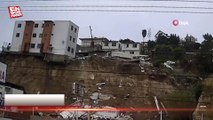 Meksika’da yamaçta bulunan 3 katlı bir bina devrildi.