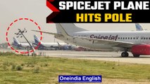 SpiceJet aircraft collides with a lightning pole during pushback at Delhi airport | Oneindia News