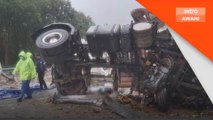 Dua lelaki maut selepas lori dinaiki mereka merempuh belakang sebuah treler di Kilometer 402.7 Lebuhraya Utara-Selatan (PLUS) menghala ke Kuala Lumpur, pada Khamis.