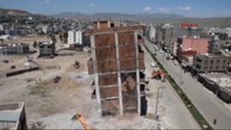 Ağır hasarlı 8 katlı iş merkezinin, kontrollü yıkım çalışması esnasında binanın bir bölümü saniyeler içinde yerle bir oldu. Yıkımı izleyenler de toz bulutuna rağmen o anları hemen kayda aldı, canlı yayınladı.