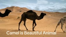 A camel is shown sitting on top of a parked car. People gather around and try to coax the camel off, but it stubbornly stays put.
