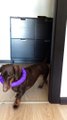Rosie, a dog, hilariously got trapped on a sofa while playing. When they jumped to sit on it, they accidentally ended up getting their head tangled in a curtain.