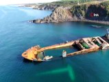 Şile'de karaya oturan gemi 17 ay sonra parçalanarak karaya çıkarılıyor