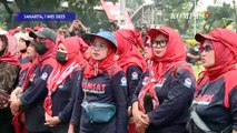 Berita pertama, Memperingati hari buruh internasional, massa gabungan kelompok buruh berdatangan ke titik aksi damai di kawasan Medan Merdeka Barat Jakarta. massa buruh datang membawa atribut hingga banner berisi poin-poin tuntutan kesejahteraan buruh.