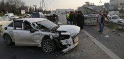 Ümraniye’de emniyet şeridinde seyreden 2 motosikletli, hatalı sollama yaparak kontrolsüz bir şekilde emniyet şeridine geçiş yapan başka bir motosiklet sürücüsüne çarptı. Çarpışma sonrası yola savrulan 2 motosikletliden biri yaralandı. Kaza, başka bir aracın araç içi kamerasına saniye saniye yansıdı.