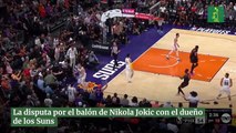 La disputa por el balón de Nikola Jokic con el dueño de los Suns