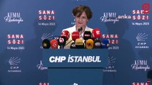 CHP İstanbul İl Başkanı Canan Kaftancıoğlu, “İstanbul’da kendi sistemizde ıslak imzalı tutanaklarımızla sandıkların yüzde 40’ının sonucuna ulaşmış durumdayız. İstanbul’da Cumhurbaşkanı Adayımız Kemal Kılıçdaroğlu yüzde 50’nin üzerinde." açıklamasını yaptı.