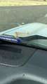 : "Saw this bus stopped with a crazy lady sitting on the front of it. It appears she rode it for at least a little bit before it stopped here in the middle of a busy street, Santa Fe Drive in Littleton, Colorado."