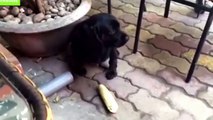 So cute puppy dog playing with water! Adorable animal...