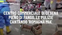 Centro commerciale di Cesena pieno di fango, le pulizie cantando 'Romagna mia': il video