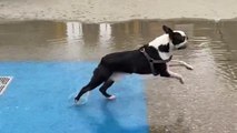 Laredo, the dog, went to a park with his owner. He got extremely excited about seeing the water fountains. The sweet pet enjoyed himself while playing in the water.