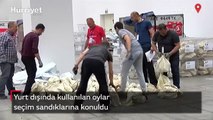 Cumhurbaşkanı seçimi 2’nci tur oylamasında yurt dışında 73 ülke ve 167 temsilcilikte 1 milyon 783 bin 107 oy kullanıldı. Oyların büyük bölümü, Türk Hava Yolları’ndan kiralanan tarifeli uçaklarla Ankara’ya getirildi. Avrupa dışındaki ülkelerdeki oyların ise saat farkları nedeniyle getirilmesine devam ediliyor. Yarın sabah saatlerinde tüm oylar, Ankara’da toplanacak. ATO Congresium’da 5 odada muhafaza edilen torbaların içindeki oylar, ülkelere göre sınıflandırılarak şeffaf seçim sandıklarına konulmaya başlandı.