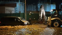 Düştüğü yerde mahsur kalan işçi vinç yardımıyla kurtarıldı
