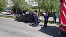 Ters dönen otomobilin sürücüsü yaralandı
