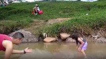This guy was attempting to dive into the water. However, he lost his balance while doing so. Unfortunately, he fell back-first into the water.