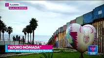 Artista mexicano lleva cerebro rojo flotante al muro fronterizo