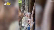 Hilarious video shows an orangutan using hand signals to ask a visitor to give her - some sweets. Amber the ape at Louisville Zoo spotted a woman called Taylor and started pointing at her backpack. The orangutan then used her hands to give her instructions through the glass at the zoo in Kentucky, USA. The ape is seen trying to persuade Taylor to empty the contents of her bag. Once Amber realises Taylor has some sweet treats in there she tries to figure out a way of getting them past the glass. The footage was captured on May 15.