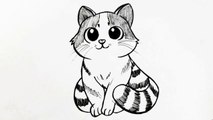 How To Draw A Cute Cat - Easy Step By Step Cartoon Art Drawing Lesson Tutorial For Kids & Beginners