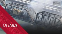 Jambatan runtuh, kereta api bawa asfalt terhumban dalam sungai di Montana