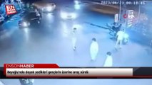 Beyoğlu’nda yabancı uyruklu iki şahıs, iki kasını darp ederek zorla araca bindirmek istedi. Bunu gören iki genç, kadınları kurtararak iki şahsa dayak attı. Ellerinden kurtulup araca binen iki şahıs, üzerlerine sürüp gençlerden birini yaraladı. Dehşet anları kameralara yansıdı.