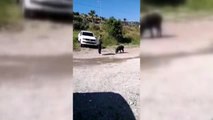 Şaşırtan anlar: Yaban domuzu ile karşılaşan tatilci onu elleri ile besledi