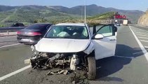BURSA - Bursa'nın İnegöl ilçesinde yağış sebebiyle bariyerlere çarpan otomobildeki 4 kişi yaralandı.