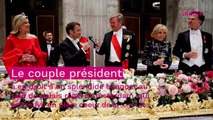 Brigitte Macron glamour dans une longue robe de gala pour un banquet royal à Amsterdam