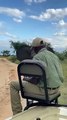 A safari guide has captured the incredible moment a tracker leading his safari vehicle came within inches of a huge elephant. The extraordinary footage shows the towering ele slowly waltzing past the vehicle, with the tracker sat exposed on a chair on its bonnet. The male elephant, known locally as Ezulwini which means Heaven in the Zulu vernacular, is in his ‘prime’ and aged around 45 to 50-years-old. Normally, this means the dominant males can be aggressive, particularly to unwanted attention from safari vehicles. A number of videos have shown the animals reacting to cars and even ramming them. But Ezulwini has been dubbed the gentlest giant, as he repeatedly enjoys getting up close and personal with tourists. The unfazed ele can even be seen in the video clip glancing the legs of the safari tracker, Themba Zwane, who freezes in position with his camera after spotting Ezulwini inching closer. But as the group of tourists in the vehicle hold their breath, the gracious animal glides past offering an incredible encounter. Matthew Sussens, a safari guide who grew up in the Greater Kruger area, captured the incredible moment in the neighboring Balule Nature Reserve.