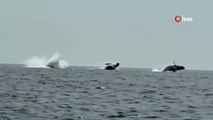 Muhteşem anlar... 3 balinanın senkronize dansı mest etti