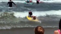Cani competono in una gara di surf in California