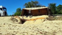 Imagens de câmera de segurança captam impressionante acidente com caminhão carregado de soja