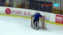 Un gardien de hockey complètement bourré pendant un match