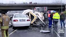 Bayrampaşa'da iş makinesi araçlara çarpıp devrildi