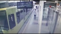 Genç kız, trenin geçişinden hemen önce bariyeri kaldırarak raylardan çekmeyi başardı. Buna rağmen trenin, bariyerin ucuna çarptığı olayda genç kızın tehlike atlattığı görüldü.