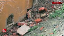 ZEYTİNBURNU'nda istinat duvarının çökmesi sonucu 4 araçta hasar oluştu.