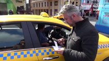 Taksim'de taksi denetimi: Evrakları eksik kadın sürücüye para cezası kesilerek aracı bağlandı