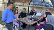 Otobüslerden tek tek alınarak stantlara getirilen öğrencilere çeşitli ikramlarda bulunularak kayıtları yapılarak bilgilendirici materyaller veriliyor.