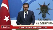 AKP Sözcüsü Ömer Çelik, partisinin Merkez Karar ve Yönetim Kurulu (MKYK) toplantısının ardından, yeni Merkez Yürütme Kurulu'nu (MYK) açıkladı.