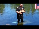 Moment 'drowning' Labrador rescued after falling into waste water pipeCredit: Carlisle, Massachusetts Police Department